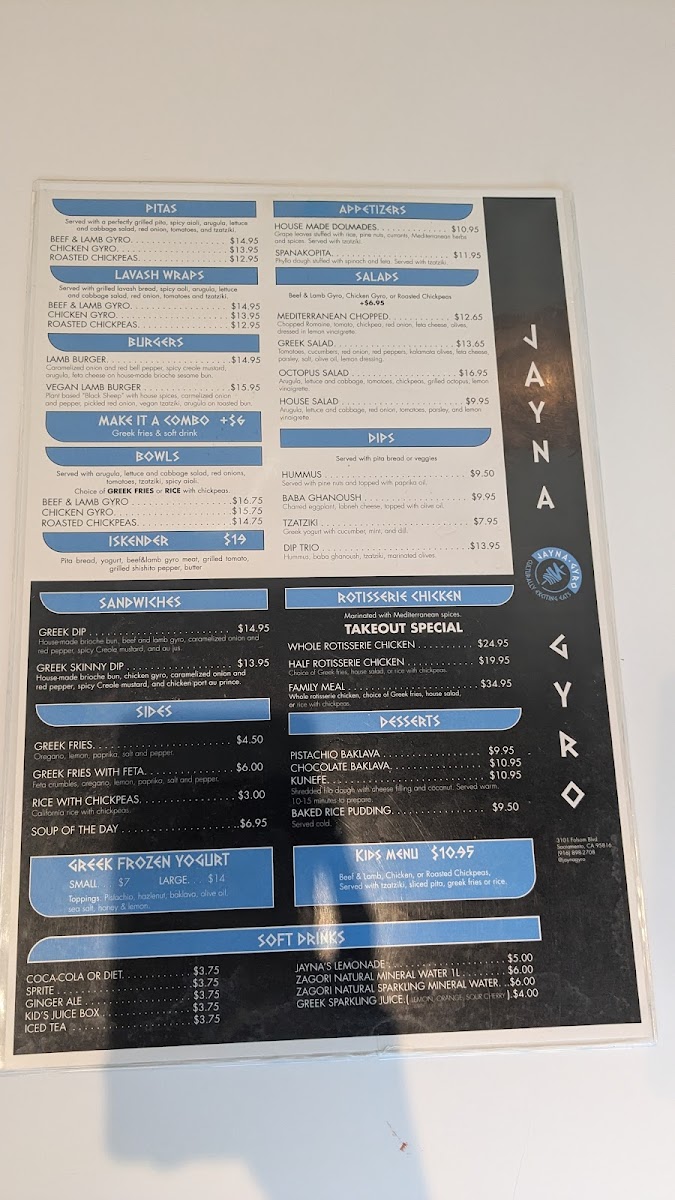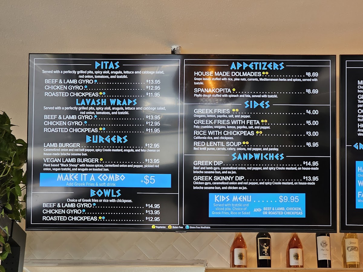 Thinly sliced rotisserie beef and lamb gyro, arugula, lettuce and cabbage salad, red onion, tomatoes, tzatziki, spicy aioli.