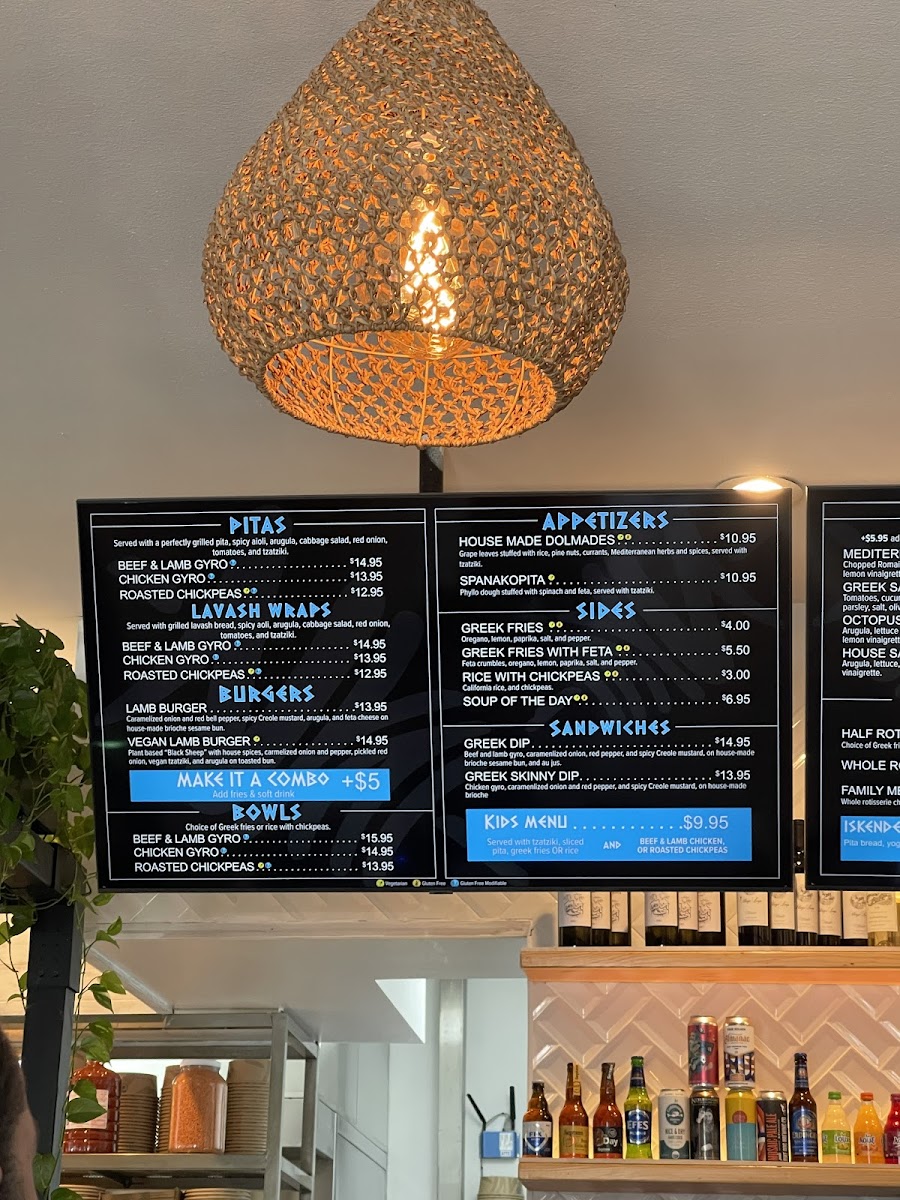 Beef & lamb, grilled pita, spicy aioli, arugula, lettuce and cabbage salad, red onion, tomatoes, and tzatziki.