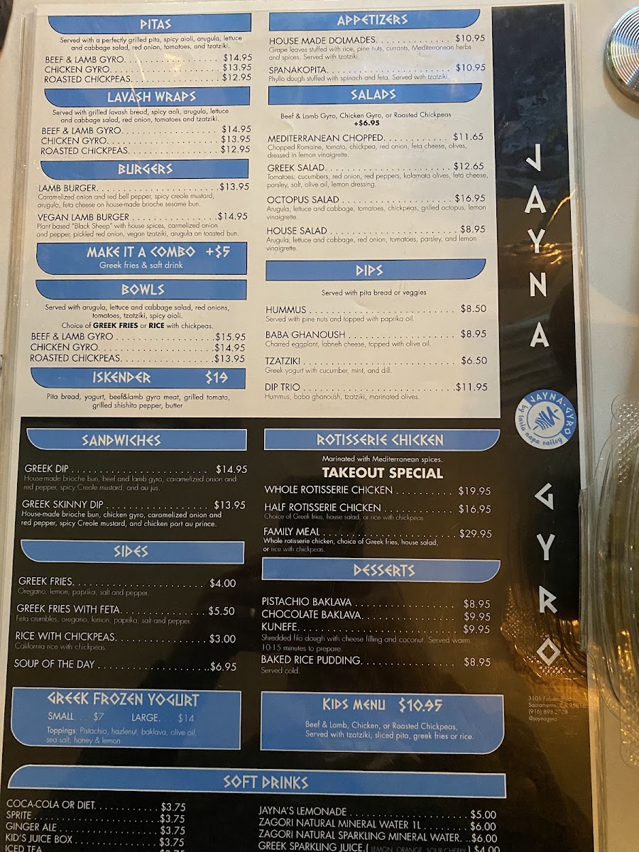 Beef & lamb gyro, grilled lavash bread, spicy aioli, arugula, lettuce and cabbage salad, red onions, tomatoes, and tzatziki.